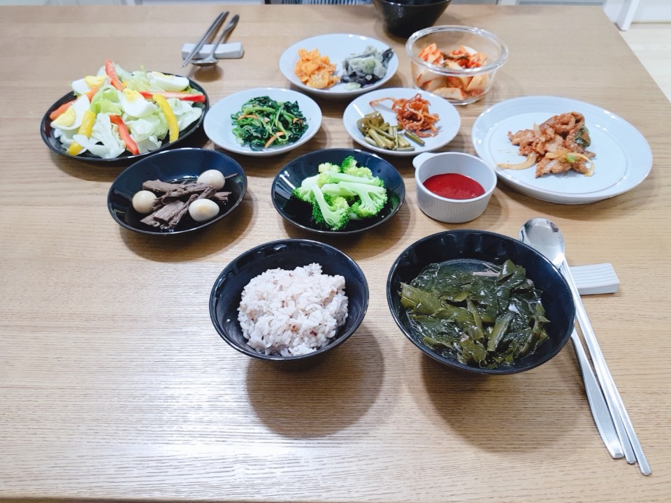 냉장고에있던 단순한 재료들로 다양하게 반찬도 만들어주시고 무엇보다 너무 깔끔하셨어요ㅎㅎ 늘 주방이 정리정돈되어있고 설거지도 그릇 하나도 미루지 않으시는 모습에 청결하고 깔끔하신게 딱 베어계신거 같았어요.